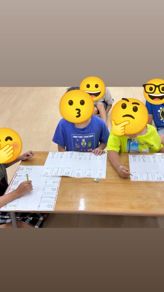 社会的ルールを学ぶ活動として、線つなぎを取り入れました。「話すときの距離は?」という問いに対しては、「腕一本分」と線でつなぎ、適切な距離感を視覚的に確認しました。また、「話し合いでみんなで決めたことならどうする?」という場面では、「まっいっか、と合わせるのも大切」と線で結びながら、集団の中で折り合いをつけることの大切さも学びました。線つなぎを通して、ルールを楽しく、わかりやすく身につけることができました。