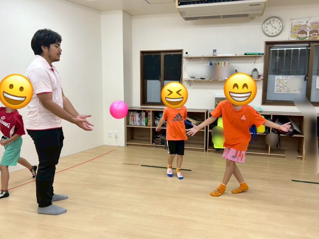 👶未就学児は風船🎈やボール⚽を使ってキャッチの練習を行いました。最初はうまくキャッチできない場面もありましたが、笑顔で何度も挑戦する姿が印象的でした😄。また、ボールを投げることにも挑戦し、課題を楽しむ姿が多く見られました👍