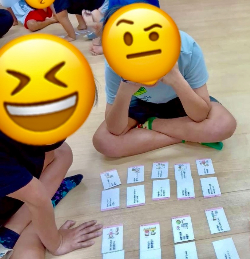 始めはスタッフと一緒に 📖 読み合わせを行い、その後のカルタ取りでは 🎴 真剣な表情で札を探し👀、✨ 楽しみながら取り組む姿 ✨ が見られました👏😊