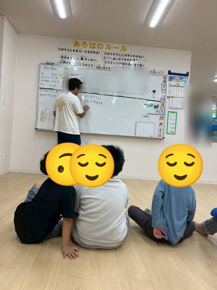 最後に、今月から導入した、トランポリンの使い方について、みんなで使う時のルールを決めました😆