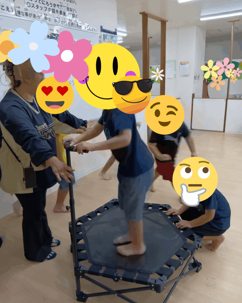 活動が終わったらみんなの楽しみにしていた自由時間!!!トランポリンに列をなして遊んでいました♪
