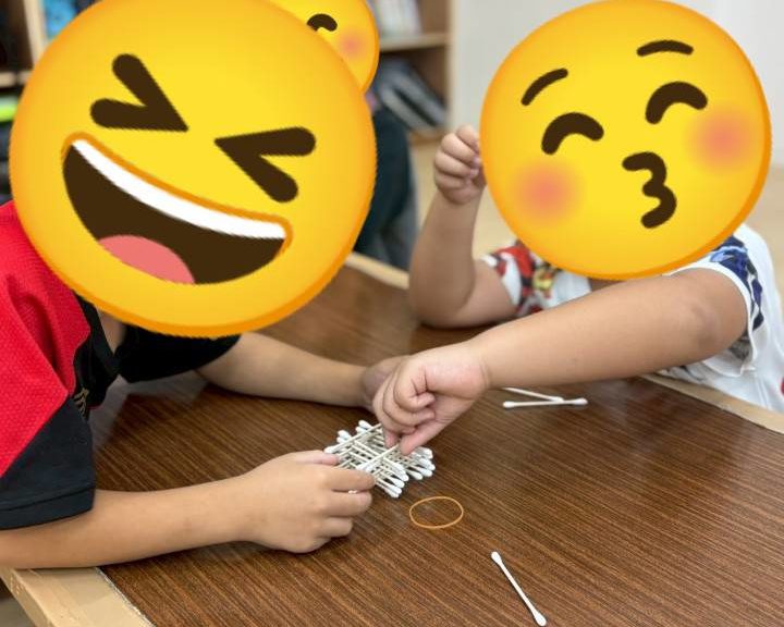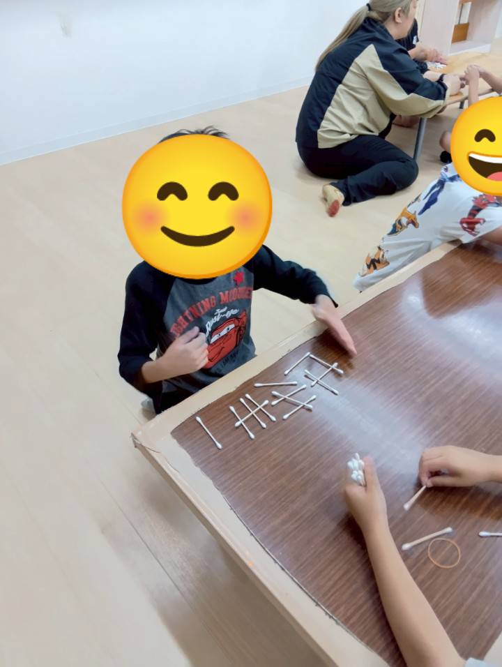 今回は二人一組で綿棒を櫓のように積んでタワーを作ってみました!