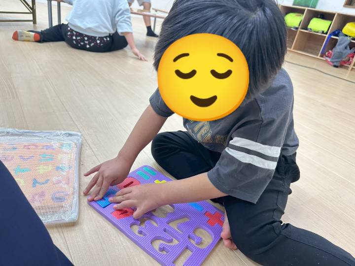 「いち」「さん」など声に出して伝え、形と数字が一致するようにパズルで遊びながら行いました😆