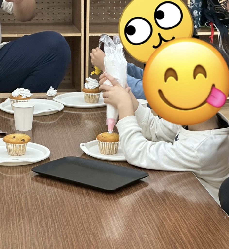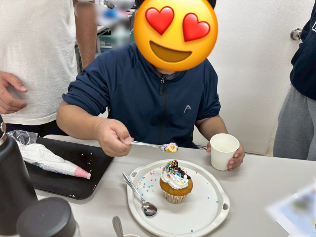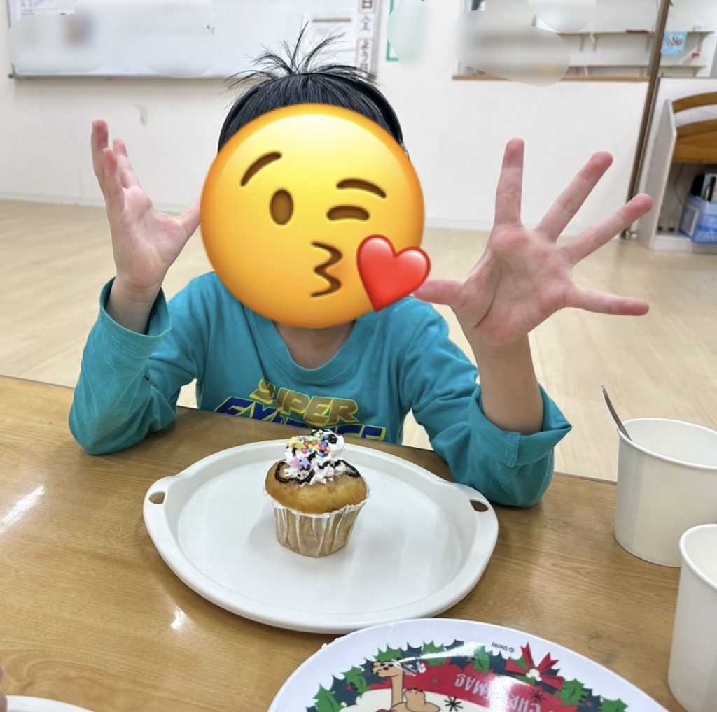 個性あふれるクリスマスカップケーキが完成🎄🎅、「おいしいね!」と笑顔で味わっていました😋💕