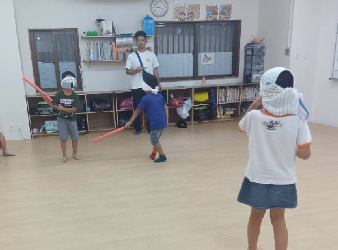 目隠しをして忍者みたいに、ゆっくり歩き相手のけはいを感じて見つけきれるかな?🤔