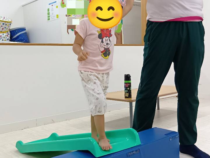 ボールの上をスタッフが支えながらピョンピョンはねたり、滑り台滑ったり笑顔で頑張ってました😙