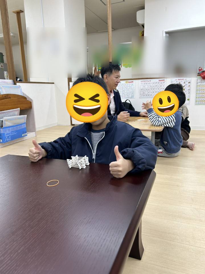 未就学児は、自己像を認識する訓練や、コグトレ棒を引っ張り、個別の課題に取り組んでいます!