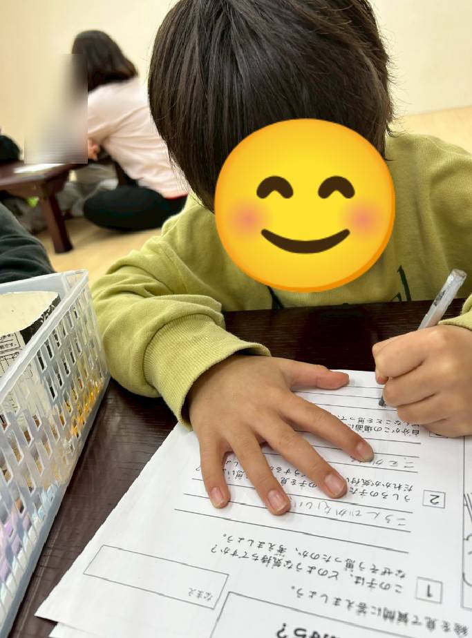 ずっと座っての課題でしたが、皆タイマーがなるまで集中して最後まで取り組む事が出来ました💮