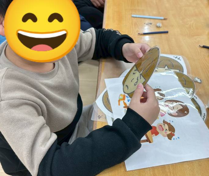 プリントでも「悲しい=😢」がマッチしているかを線結びでやってみたり、色んな方法で行いました👍