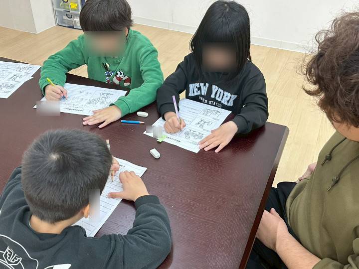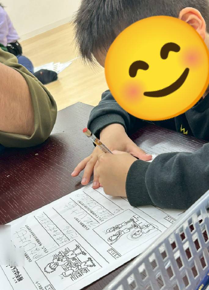 今回は個々に合わせたプリントを用意し、イラストを見て「泣いてる子」「周りで見ている子」の気持ちを想像しながら書いてみました✎