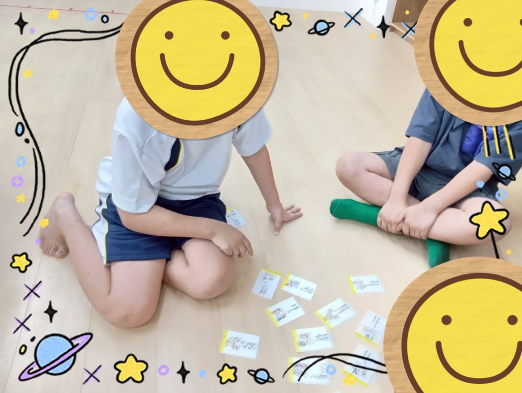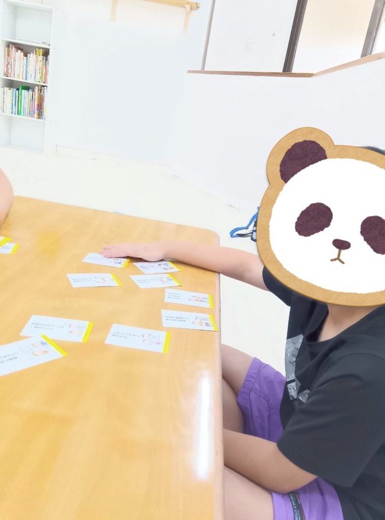 課題の社会のルール・マナーではスタッフが用意したカルタを使いました!