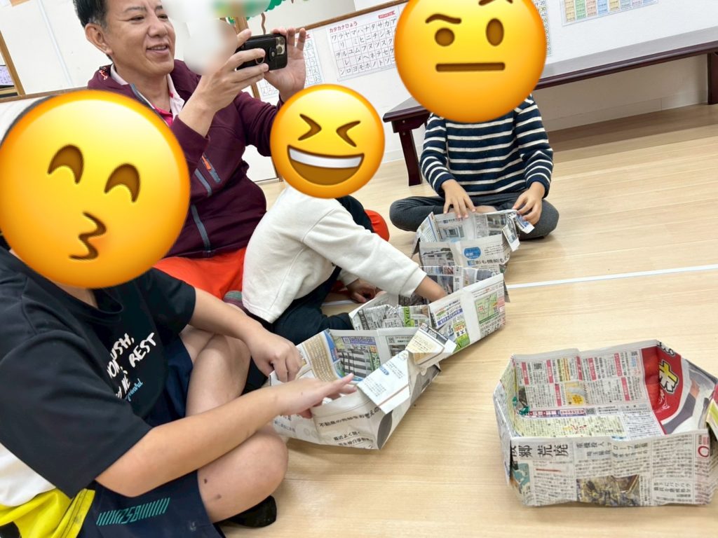 ✨今日の課題は工作で、節分に向けて新聞紙を折って豆まき用の箱作りを行いました👹🫘。