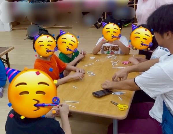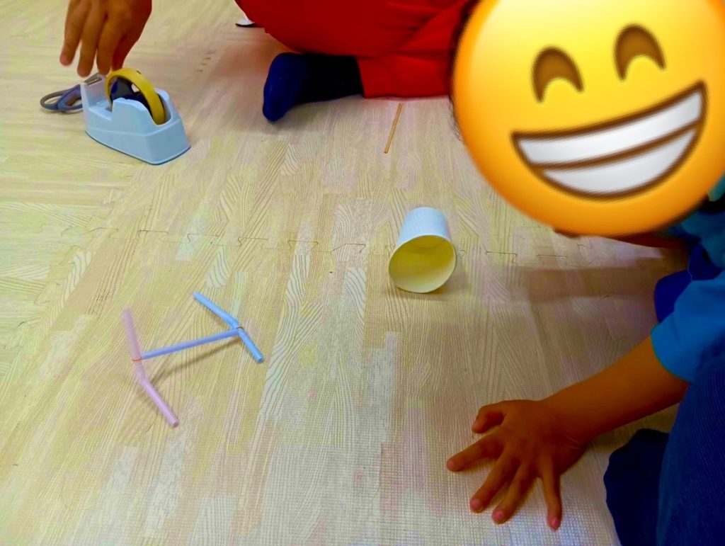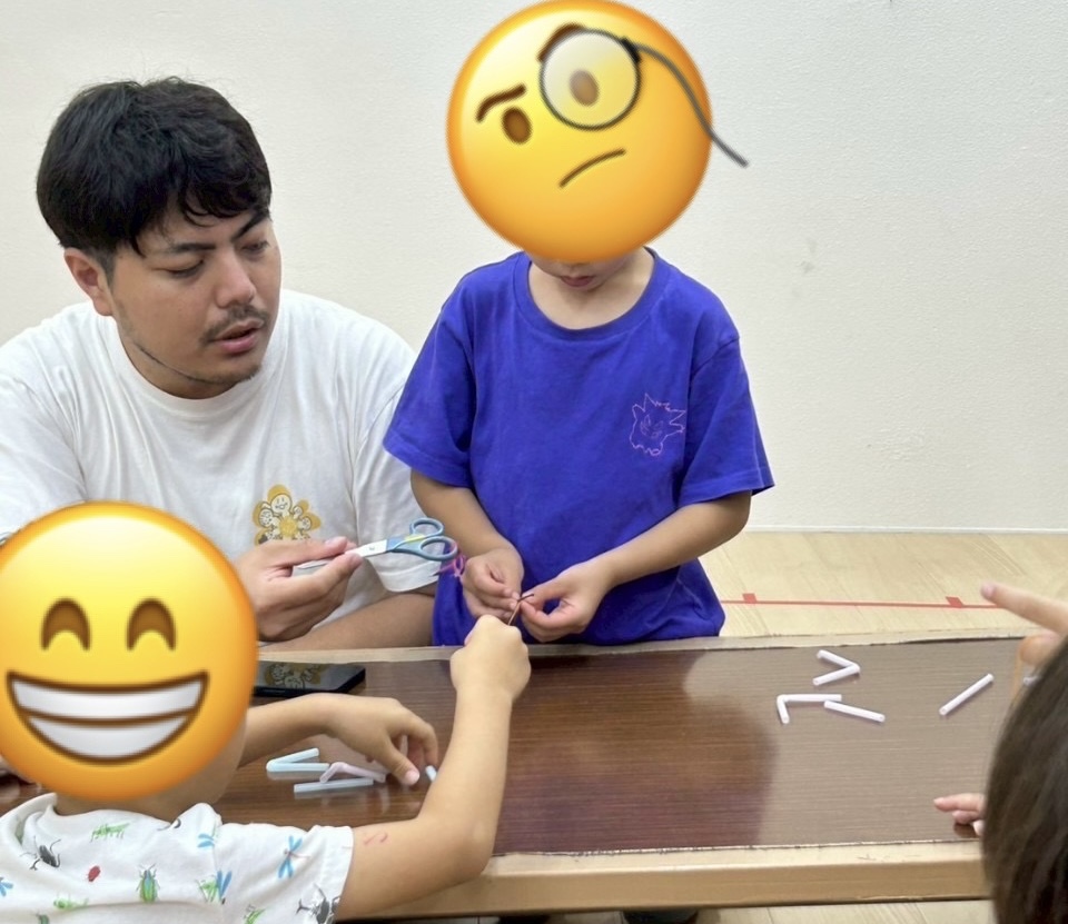 工作が少し難しい年齢の児童も、完成した「バタバタストロー」が動き出す様子に目をまんまるにして見入っていました👀ストローの動きを追いかけたり、手を伸ばして捕まえようとしたりと、全身を使って楽しむ姿が印象的でした✨